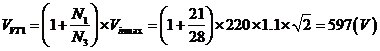 根據(jù)單端正激式變換器計開關管VT1承受最大電壓公式得: