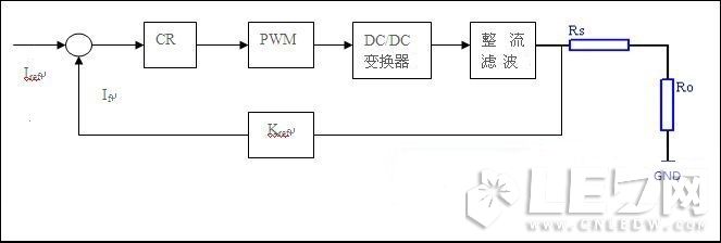 下圖是恒流控制反饋系統(tǒng)圖。圖中Iref是電流設置基準;CR是電流PI調(diào)節(jié);Kfi是電流取樣反饋系數(shù);RS、Ro是電流取樣電阻和負載電阻。該系統(tǒng)采用是電流模式控制,可以檢測變換器輸出電流,適當?shù)剡x取反饋系數(shù)Kfi, 通過P(比例)、PI(比例積分)、PID(比例積分微分器)實現(xiàn)恒流控制。在反饋系數(shù)不變情況下,也可以通過改變電壓或電流實現(xiàn)恒流值控制。