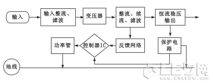 任何電源要實現(xiàn)恒流功能,均需對電源的輸出電流進行檢測取樣,與電流設置值即參考值進行比較,經(jīng)負反饋放大調(diào)節(jié)(P、PI、PID)。線性串聯(lián)穩(wěn)壓是調(diào)節(jié)調(diào)整管的壓降,而開關電源是調(diào)節(jié)變換器的脈寬(或占空比),維持輸出電流的恒定。