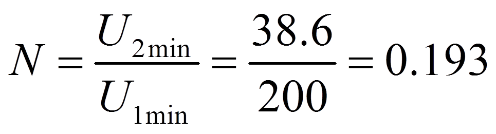 輸入直流電壓U1的最小值使用按輸出電路計算求得的U1min值。根據(jù)中國輸配電情況U1=200~253V,則變壓比N為