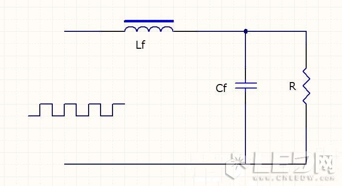 在開關電源中帶磁心的電感器,一般采用電感線圈Lf 與輸出濾波電容器Cf 構成的“L”型濾波器如下圖。電感線圈對高頻成分呈現(xiàn)很高的感抗,而電容對高頻成分呈現(xiàn)很小容抗,已達到在電路中抑制紋波和平滑直流的作用。