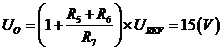 輸出電壓可通過調(diào)節(jié)R5、R6、R7組成分壓電路確定的: