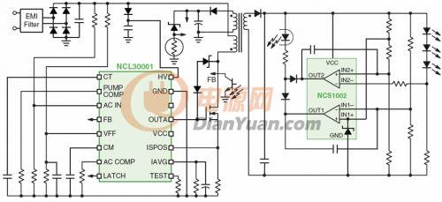 1) 基于NCL30001的電流可調(diào)節(jié)恒流功率因數(shù)校正區(qū)域照明LED電源
